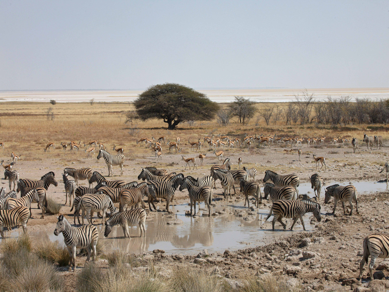 Découverte d’Etosha. Vous y ferez un safari dans un véhicule adapté. Vous découvrirez l’abondante faune du parc en allant d’un point d’eau à un autre.